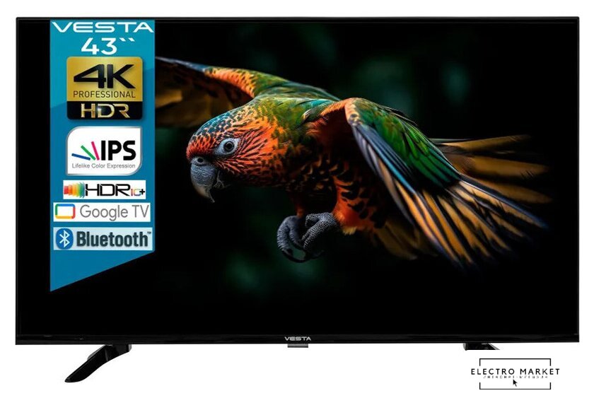 43" 3840x2160 (4K UHD), частота матрицы 60 Гц, Smart TV (Салют ТВ), Wi-Fi, смарт пульт