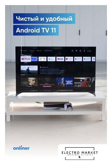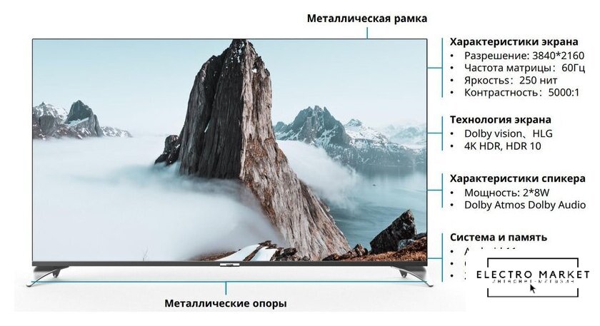 50" 3840x2160 (4K UHD), частота матрицы 60 Гц, Smart TV (Android), HDR10, Wi-Fi, смарт пульт