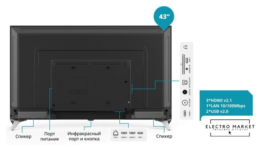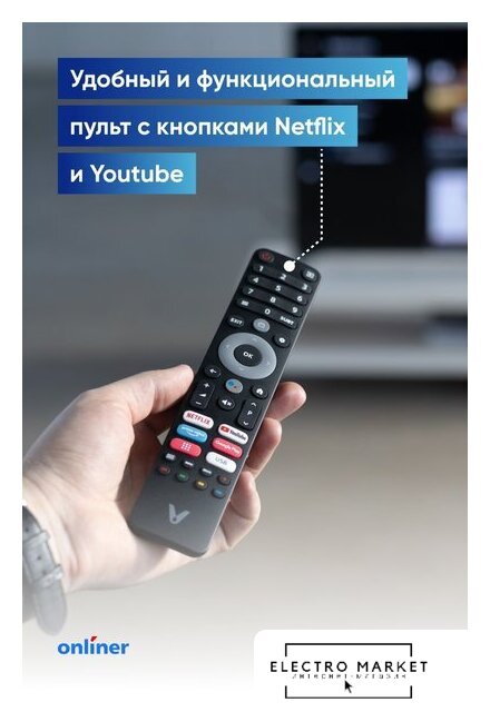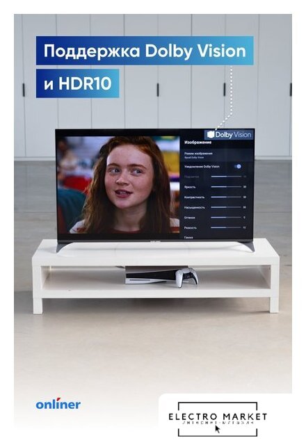 43" 3840x2160 (4K UHD), частота матрицы 60 Гц, Smart TV (Android TV), HDR10, Dolby Vision, Dolby Atmos, Wi-Fi, смарт пульт
