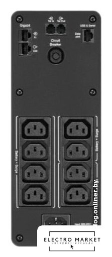 500 Вт, line-interactive, 6 розеток IEC320-C13, время работы при максимальной нагрузке: до 4.6 мин