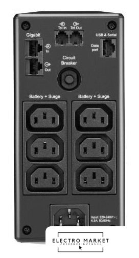 900 Вт, line-interactive, 4 розетки IEC320-C13, время автономного питания: до 3 мин (3 мин при 100%; 5 мин - 70%; 10 мин - 50%; 20 мин - 30%)