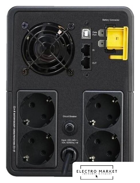 650 Вт, line-interactive, 6 розеток IEC320-C13, время автономного питания: до 0.8 мин (46 секунд при 100% нагрузке; 6 мин 15 сек при 50% нагрузке)