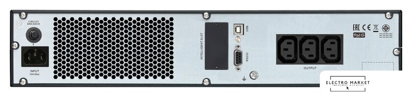 2700 Вт, line-interactive, 9 розеток IEC320-C13/IEC320-C19, время автономного питания: до 3 мин (3 мин при 100%; 5 мин - 70%; 10 мин - 50%; 22 мин - 30%)