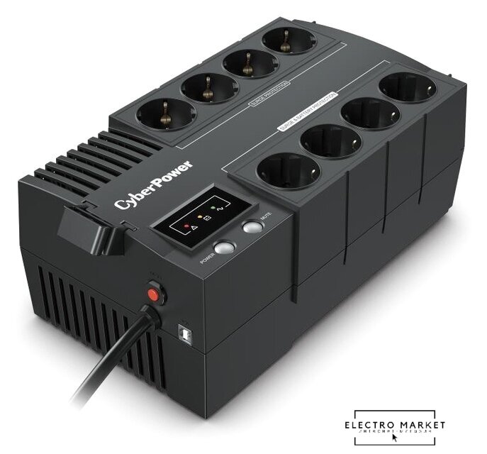 600 Вт, line-interactive, 8 розеток Schuko (евро с заземлением), время автономного питания: до 4 мин (при 100% нагрузке)