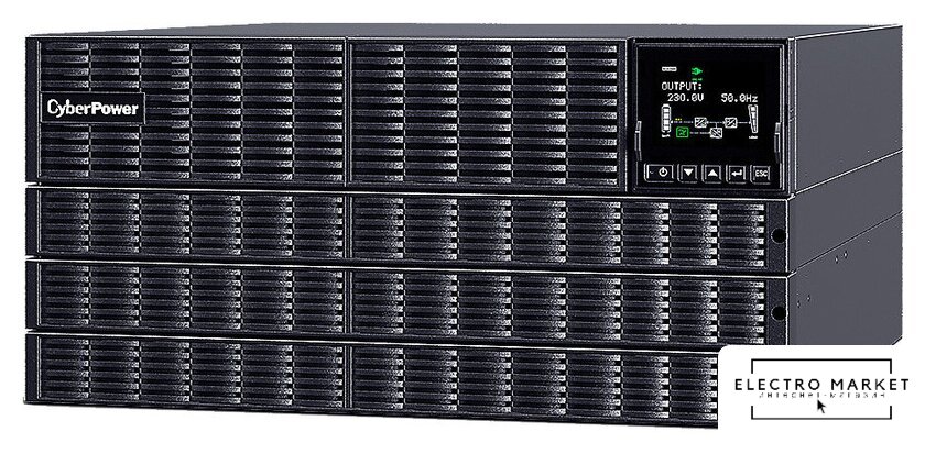 6000 Вт, online, 10 розеток IEC320-C13/IEC320-C19/клеммы, время автономного питания: до 4.4 мин (при полной нагрузке, 13 мин - при половинной нагрузке)