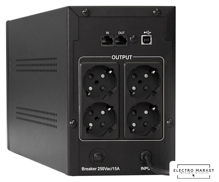 375 Вт, line-interactive, 5 розеток, время работы при максимальной нагрузке: до 12 мин