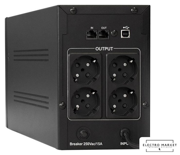 630 Вт, line-interactive, 4 розетки евро с заземлением, время автономного питания: до 14 мин (при нагрузке 200 Вт)