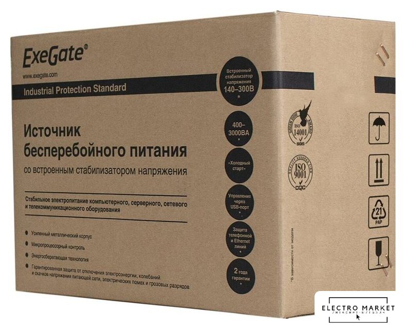 360 Вт, line-interactive, 2 розетки евро с заземлением, время автономного питания: до 1 мин (13 сек при 80% нагрузке; 5 мин 3 сек при 50% нагрузке)