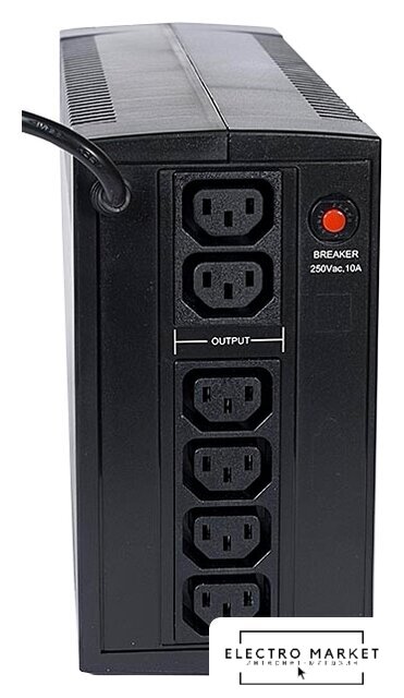 1200 Вт, line-interactive, 6 розеток, время работы при максимальной нагрузке: до 1.5 мин