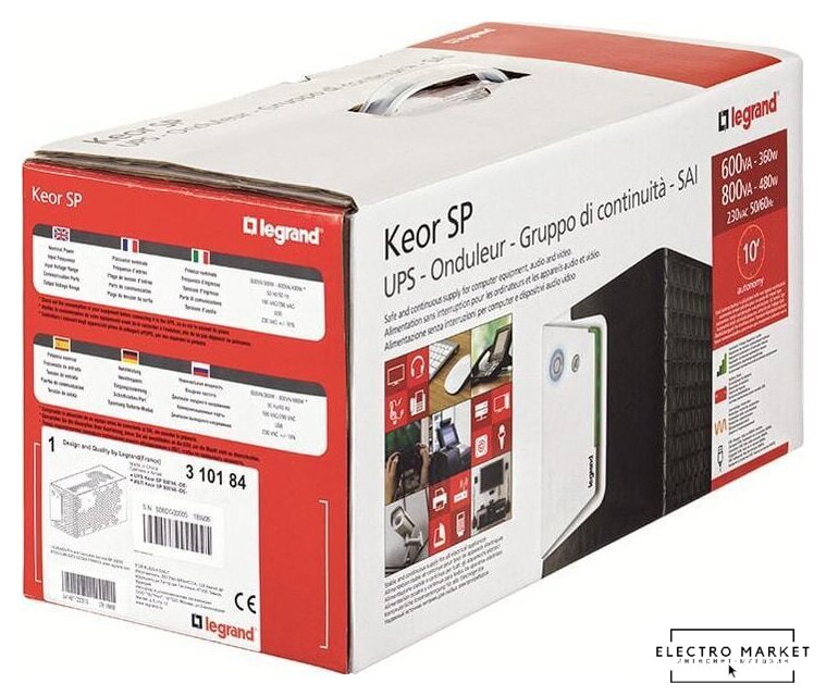 1000 Вт, line-interactive, 8 розеток евро с заземлением, время работы при максимальной нагрузке: до 5 мин