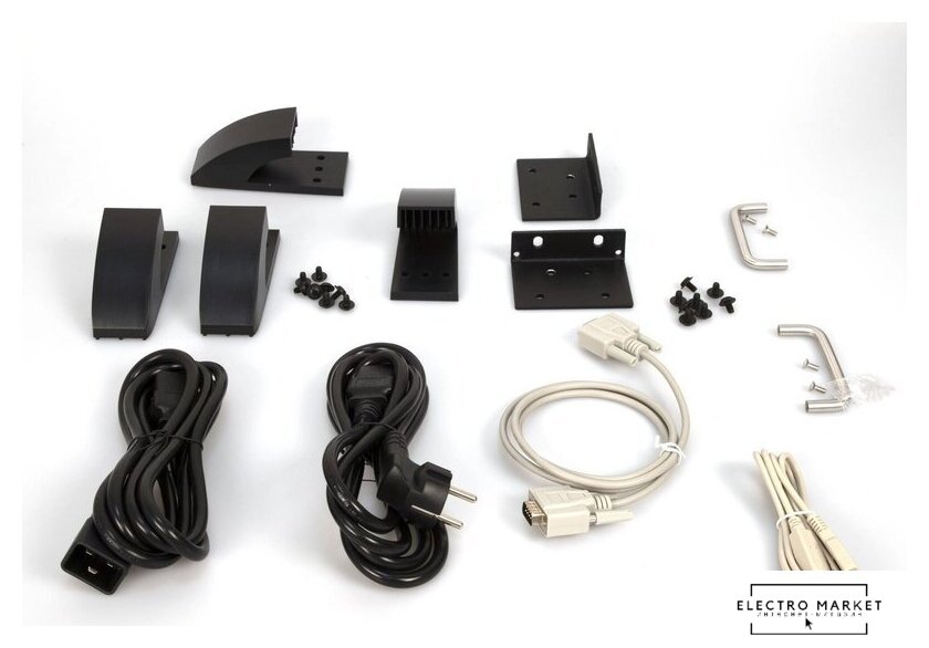Комплектация | - Входной шнур питания длиной 1,8 метра (съемный)- Выходной шнур питания длиной 1,8 метра- Коммуникационный кабель RS-232/DB9- USB-кабель- Инструкция по эксплуатации с гарантийным талоном- Ушки для монтажа в стойку (Rack Mounting EARS)- Стеллажная башенная стойка (Rack Tower Stand) |