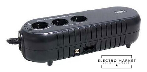 600 Вт, line-interactive, 3 розетки евро с заземлением, время автономного питания: до 20 мин (ПК с 17" монитором (нагрузка 100Вт))