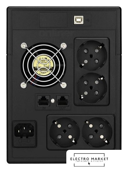 1200 Вт, line-interactive, 4 розетки евро с заземлением, время автономного питания: до 1 мин (1 мин 22 сек при 100% нагрузке; 7 мин 41 сек при 50% нагрузке)
