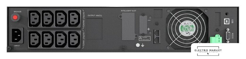 1600 Вт, online, 6 розеток IEC320-C13, время автономного питания: до 8 мин (при 50% нагрузке; 2 мин - при 100%)