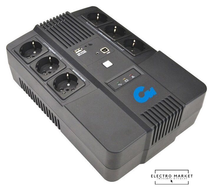 600 Вт, line-interactive, 3 розетки IEC320-C13, время работы при максимальной нагрузке: до 20 мин