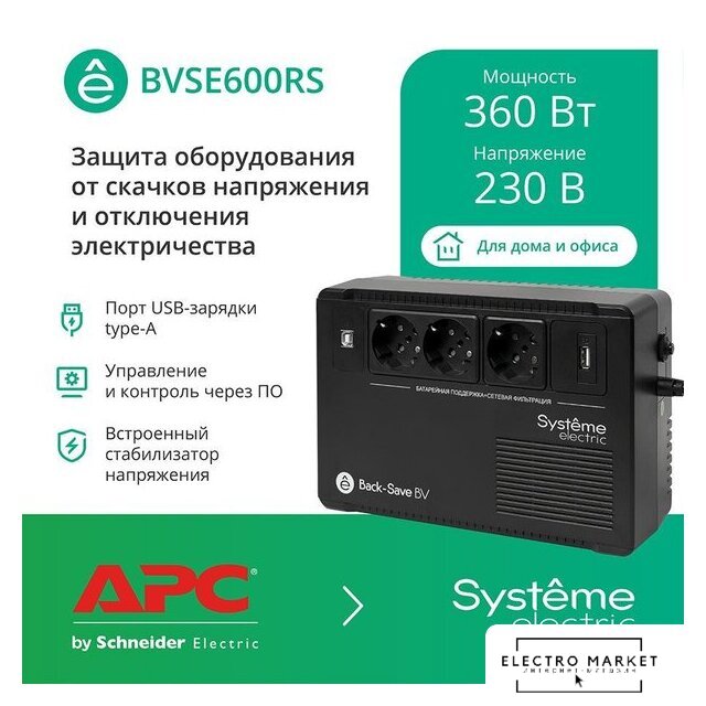 510 Вт, line-interactive, 8 розеток евро с заземлением, время работы при максимальной нагрузке: до 20 мин