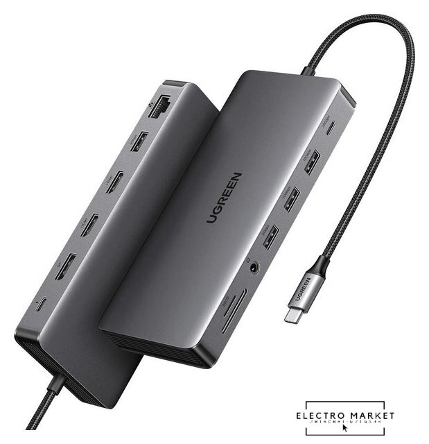 | Все разъемы на адаптере | USB-A 3.2 Gen2 (10 Гбит/с), USB-A 3.2 Gen1 (5 Гбит/с), USB-C 3.2 Gen2 (10 Гбит/с), HDMI, DisplayPort, RJ-45, USB-C (только для зарядки), 3.5 мм jack |