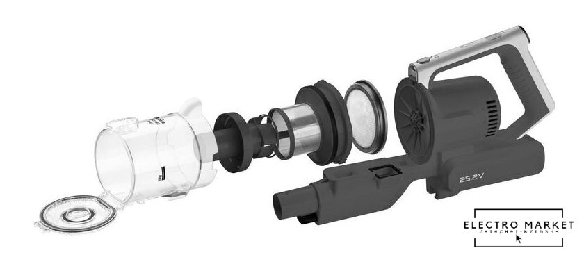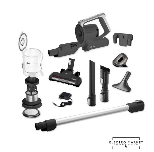 вертикальный 2-в-1, аккумулятор, потребление: 250 Вт, регулировка мощности, турбощетка, док-станция без зарядки, шум 80 дБ