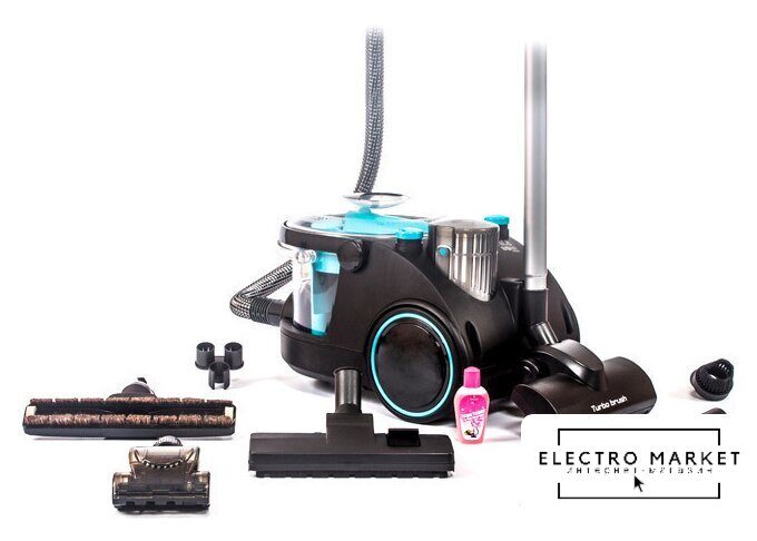 стандартный, пылесборник: аквафильтр, мощность всасывания: 400 Вт, потребление: 1800 Вт, труба: сталь, регулировка мощности на корпусе, турбощетка