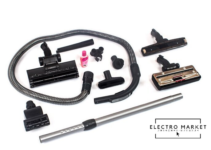 стандартный, пылесборник: мешок+контейнер (циклонный), потребление: 1600 Вт, без регулировки мощности, шум 69 дБ