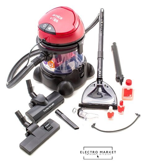 бытовой моющий, пылесборник: аквафильтр, мощность всасывания: 320 Вт, потребление: 1600 Вт, труба: сталь, регулировка мощности на корпусе, шум 81 дБ
