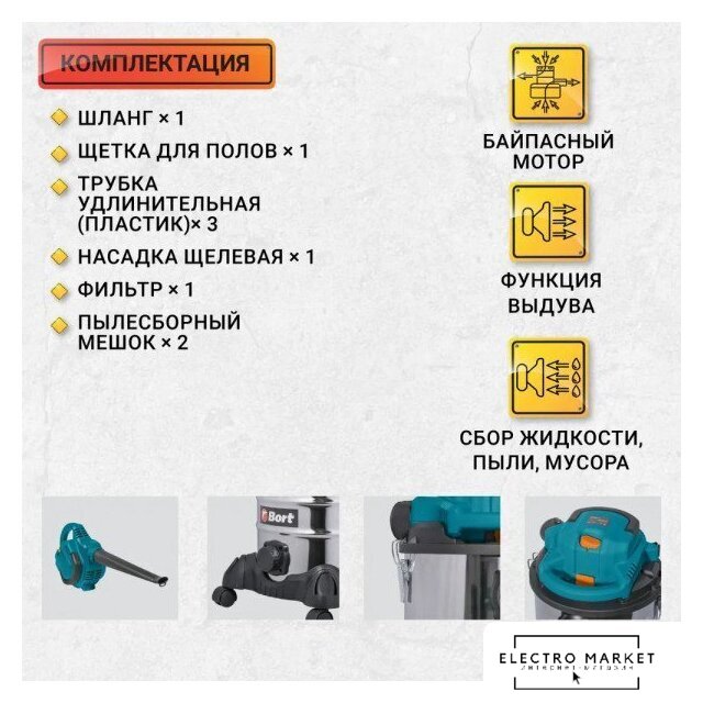 строительный, сеть, мощность всасывания: 270 Вт, потребление: 1600 Вт, шум 78 дБ