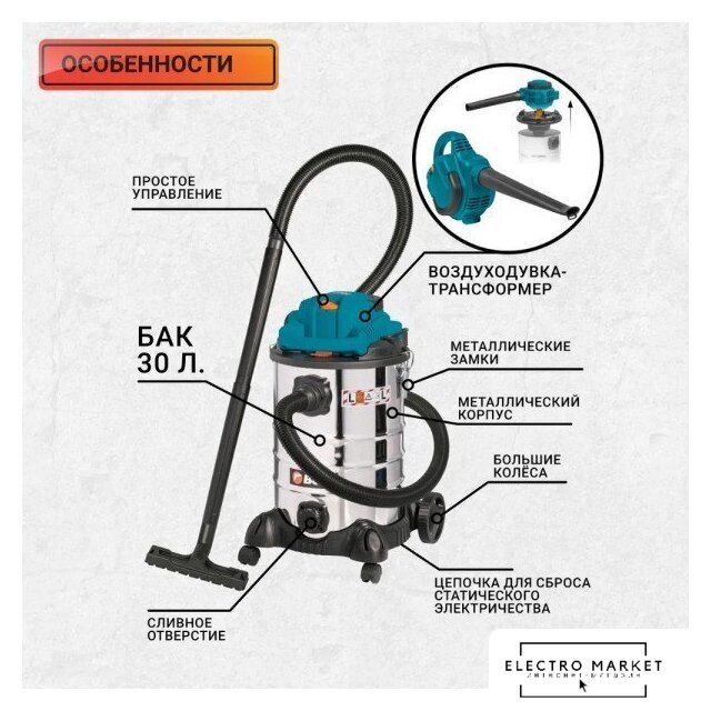 моющий/строительный, сеть, потребление: 1300 Вт, шум 87 дБ
