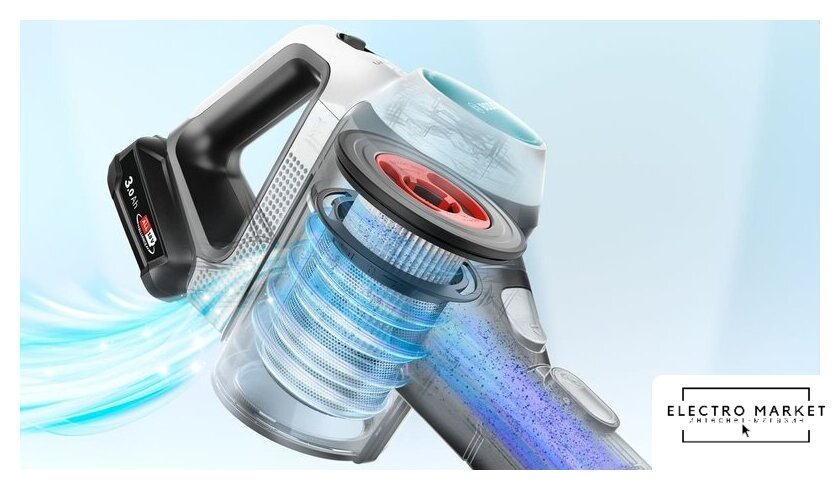 вертикальный 2-в-1, аккумулятор, мощность всасывания: 105 Вт, потребление: 400 Вт, регулировка мощности, док-станция с зарядкой, шум 87 дБ