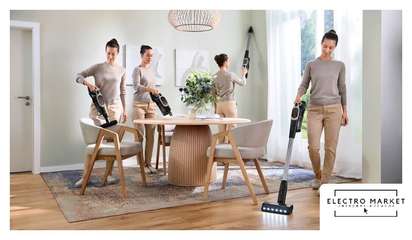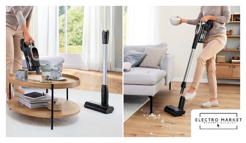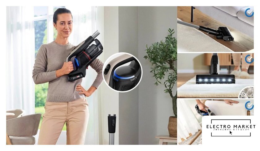 вертикальный/вертикальный с влажной уборкой, аккумулятор, регулировка мощности, турбощетка, шум 82 дБ