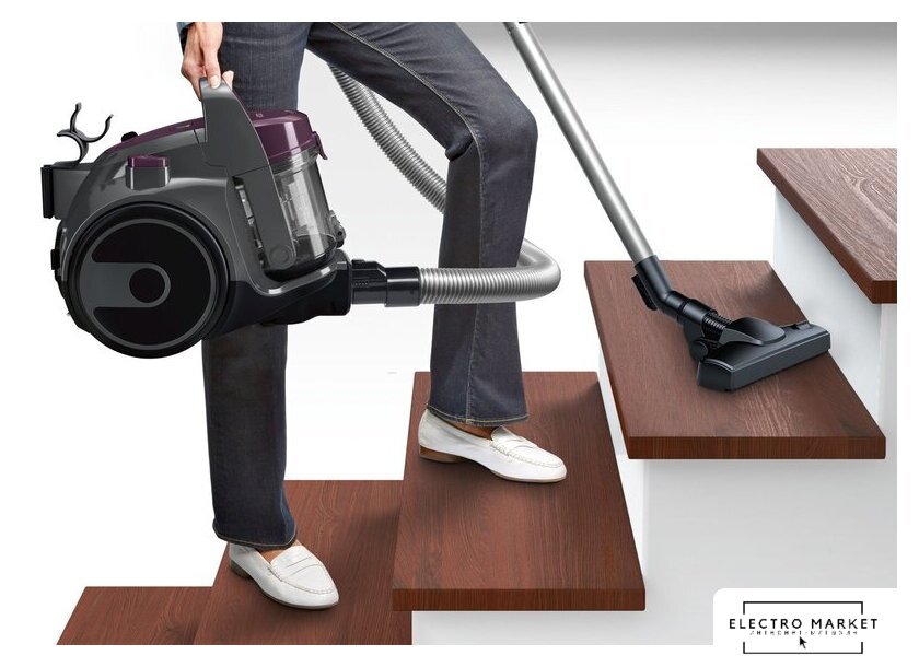 классический с контейнером, пылесборник: контейнер, мощность всасывания: 350 Вт, потребление: 2300 Вт, регулировка мощности на корпусе, шум 83 дБ, турбощетка