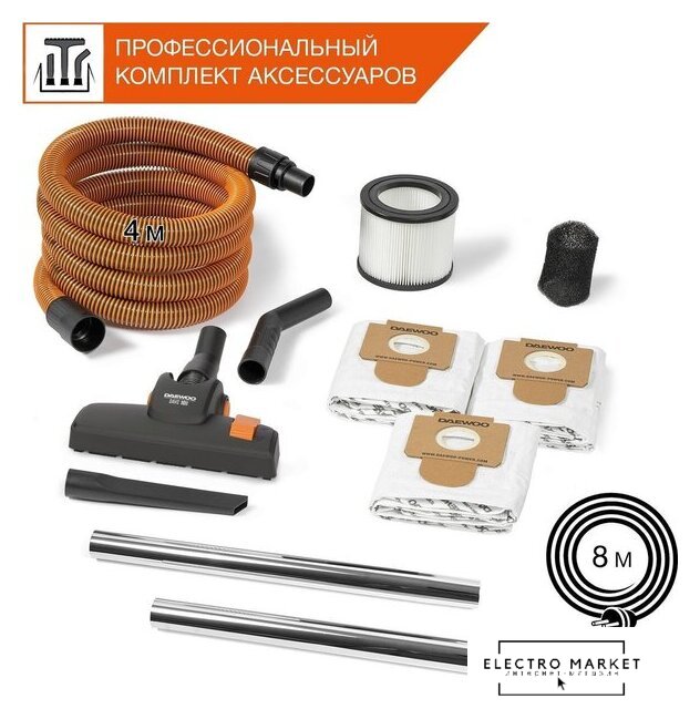строительный, сеть, мощность всасывания: 270 Вт, потребление: 1200 Вт, шум 78 дБ