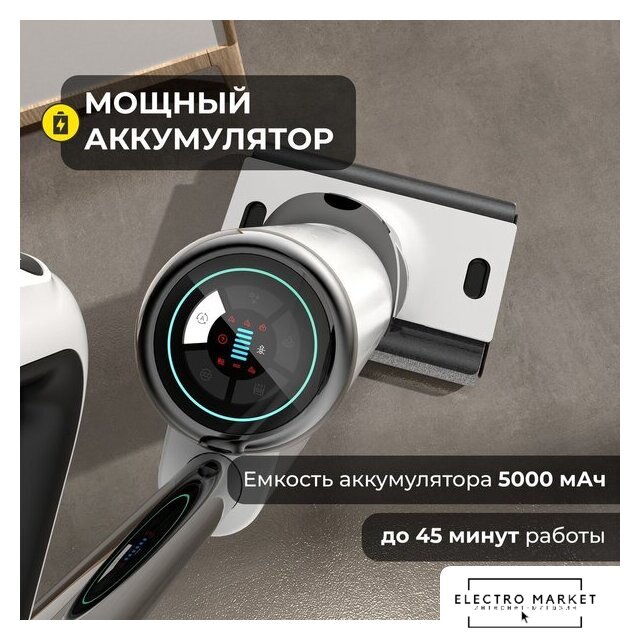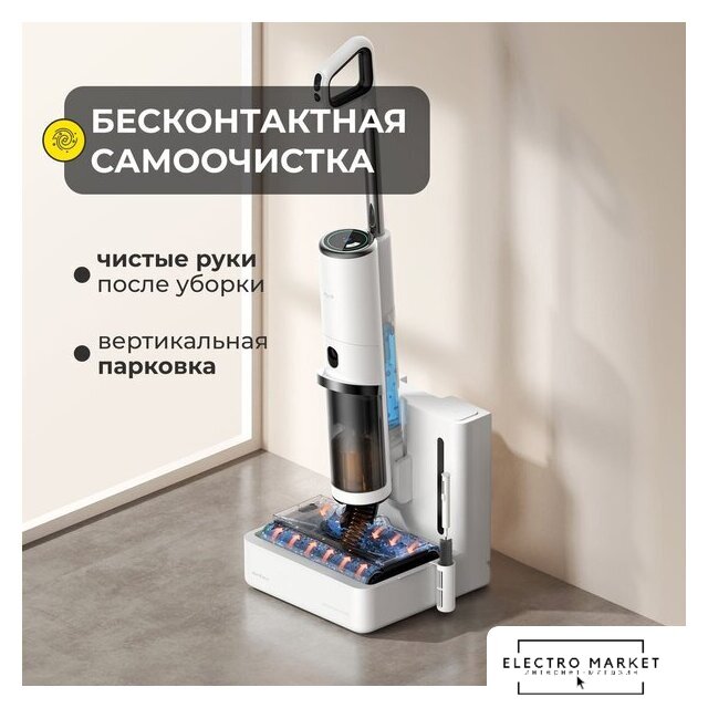 вертикальный с влажной уборкой, аккумулятор, регулировка мощности, док-станция с зарядкой, шум 79 дБ