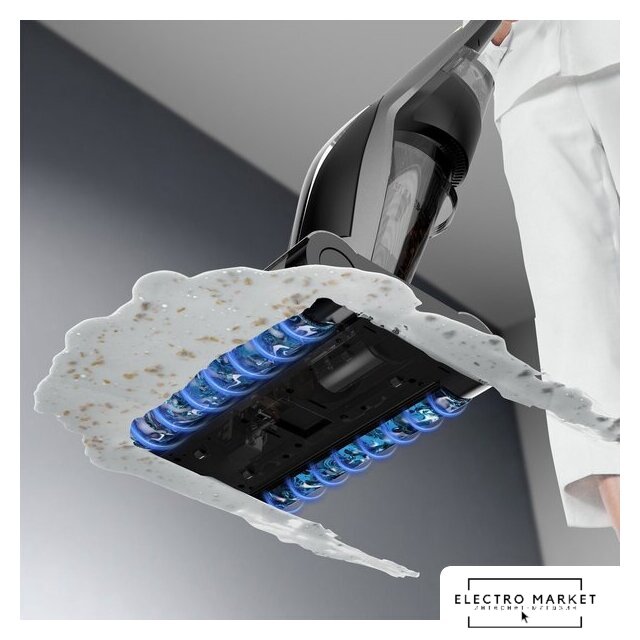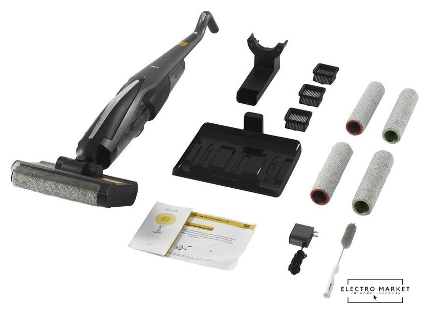 вертикальный моющий, аккумулятор, мощность всасывания: 75 Вт, потребление: 200 Вт, регулировка мощности, турбощетка, док-станция с самоочисткой и зарядкой, шум 74 дБ