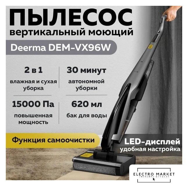 вертикальный моющий, аккумулятор, потребление: 200 Вт, турбощетка, док-станция с самоочисткой и зарядкой