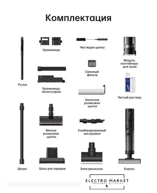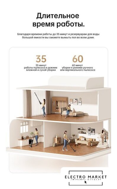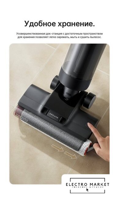 вертикальный моющий, аккумулятор, потребление: 400 Вт, регулировка мощности, турбощетка, док-станция с самоочисткой и зарядкой