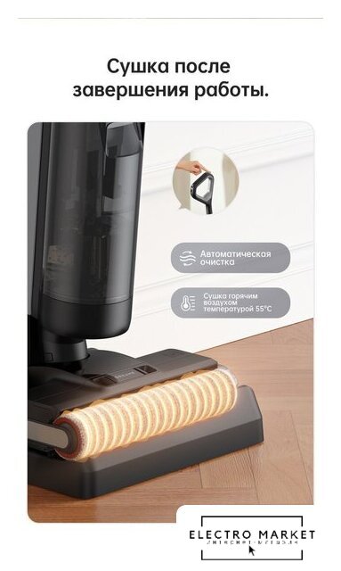 вертикальный моющий, аккумулятор, потребление: 230 Вт, регулировка мощности, турбощетка, док-станция с самоочисткой и зарядкой, шум 75 дБ