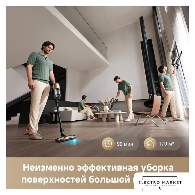 вертикальный с влажной уборкой, аккумулятор, регулировка мощности, турбощетка, шум 84 дБ