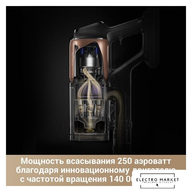 вертикальный 2-в-1, аккумулятор, потребление: 250 Вт, регулировка мощности, турбощетка, док-станция с зарядкой, шум 78 дБ