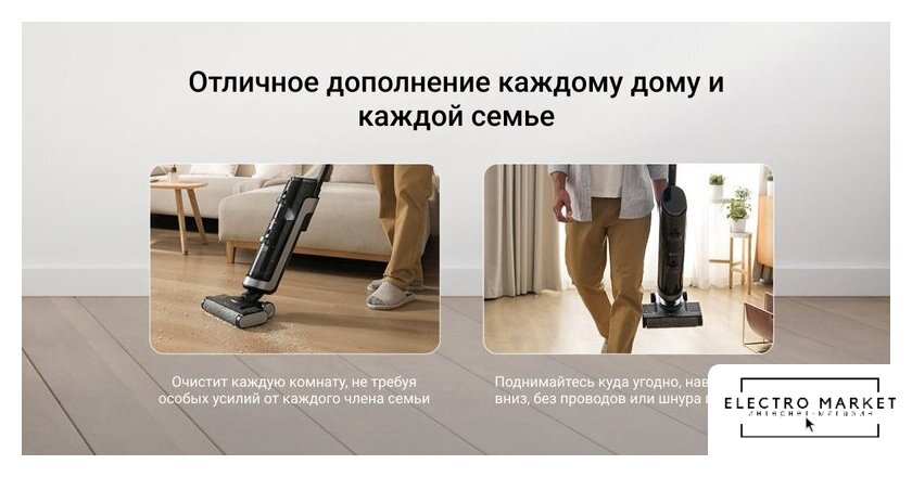 вертикальный с влажной уборкой, аккумулятор, регулировка мощности, турбощетка, шум 80 дБ