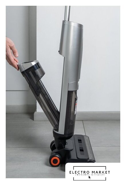 вертикальный моющий, аккумулятор, регулировка мощности, турбощетка, док-станция с самоочисткой и зарядкой, шум 80 дБ