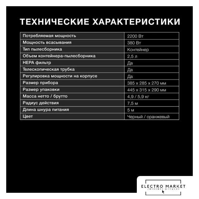 | Объём пылесборника | 2.5 л |