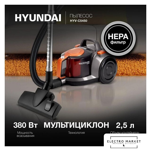 классический с контейнером, сеть, мощность всасывания: 450 Вт, потребление: 2200 Вт, регулировка мощности