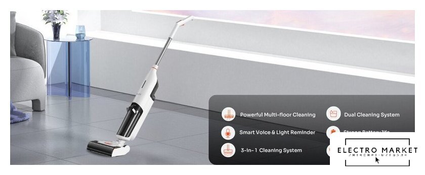 | Функциональные особенности | всасывание жидкостей, подсветка рабочей зоны, дисплей, автоматическая мойка швабры |