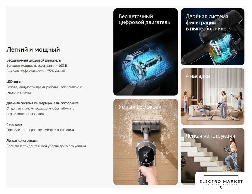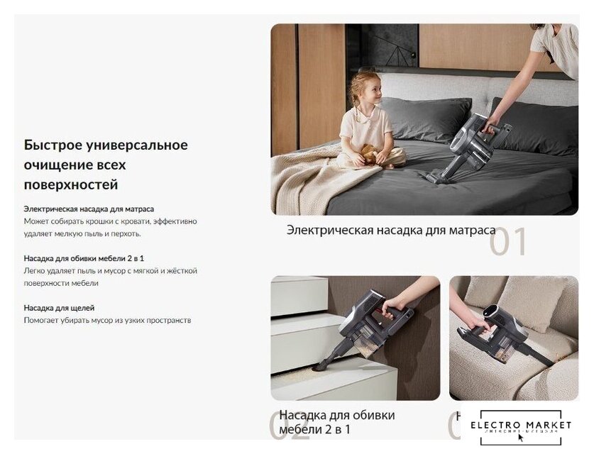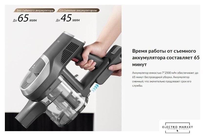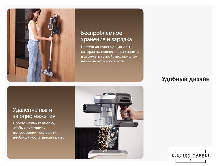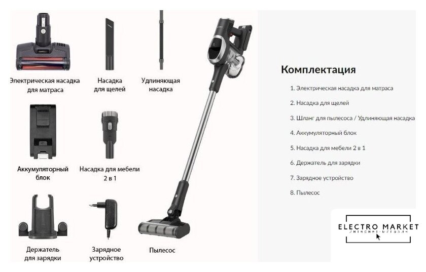 вертикальный 2-в-1, аккумулятор, регулировка мощности, турбощетка, док-станция без зарядки, шум 78 дБ