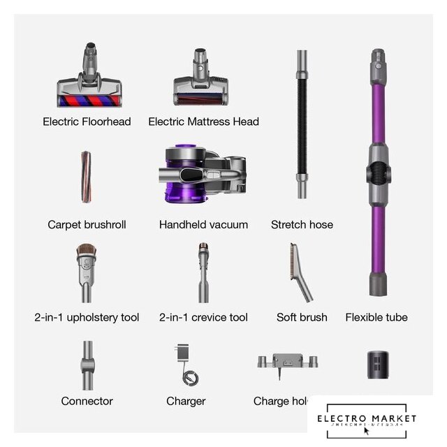вертикальный 2-в-1, аккумулятор, потребление: 250 Вт, регулировка мощности, турбощетка, док-станция с зарядкой, шум 78 дБ