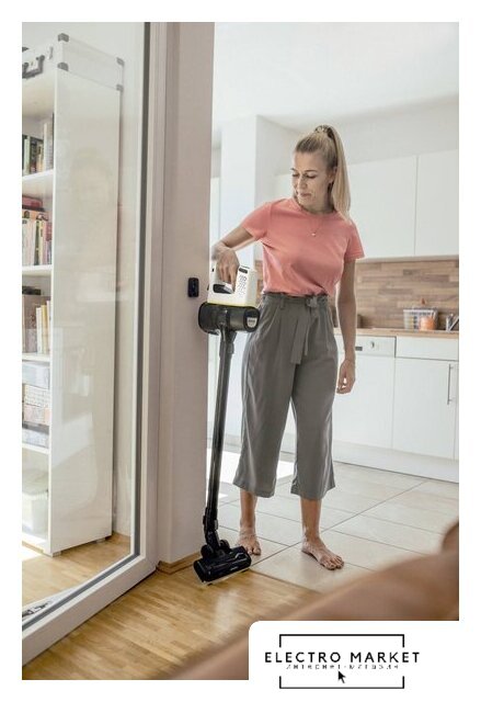 вертикальный 2-в-1, аккумулятор, мощность всасывания: 150 Вт, потребление: 450 Вт, регулировка мощности, турбощетка, док-станция с зарядкой