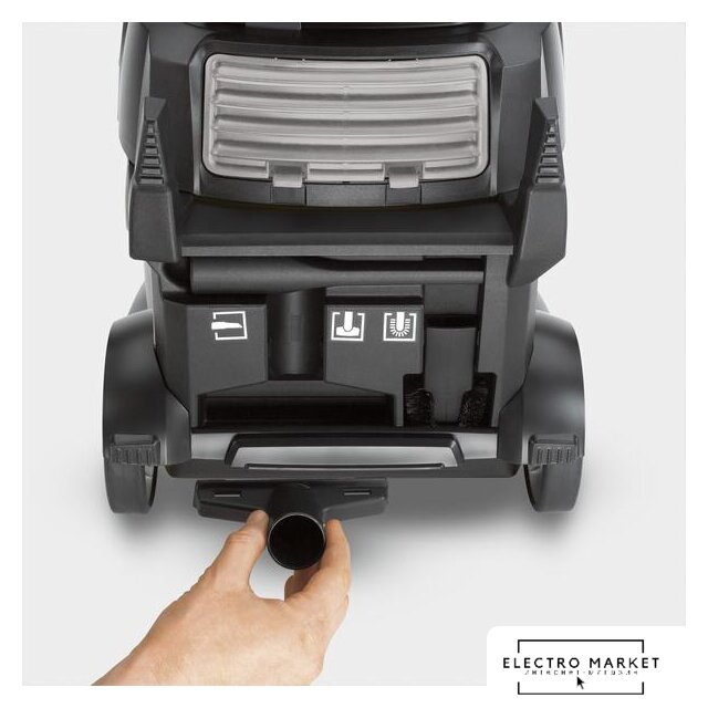 коммерческий, пылесборник: мешок+контейнер, потребление: 1380 Вт, регулировка мощности на корпусе, шум 72 дБ