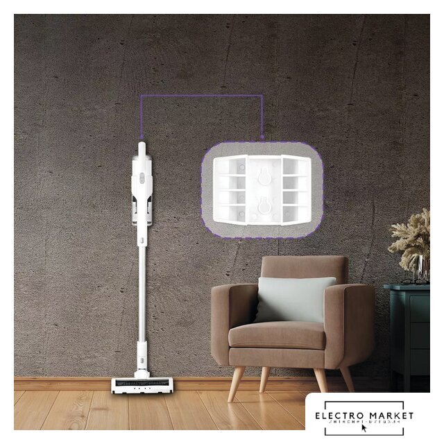 вертикальный 2-в-1, аккумулятор, регулировка мощности, турбощетка, док-станция без зарядки, шум 80 дБ