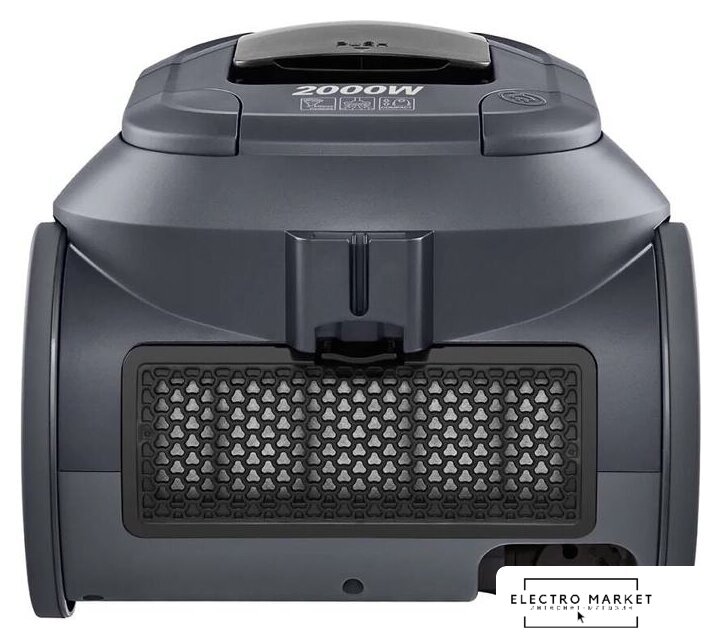 классический с контейнером, пылесборник: контейнер, потребление: 2000 Вт, регулировка мощности на корпусе, шум 82 дБ, турбощетка