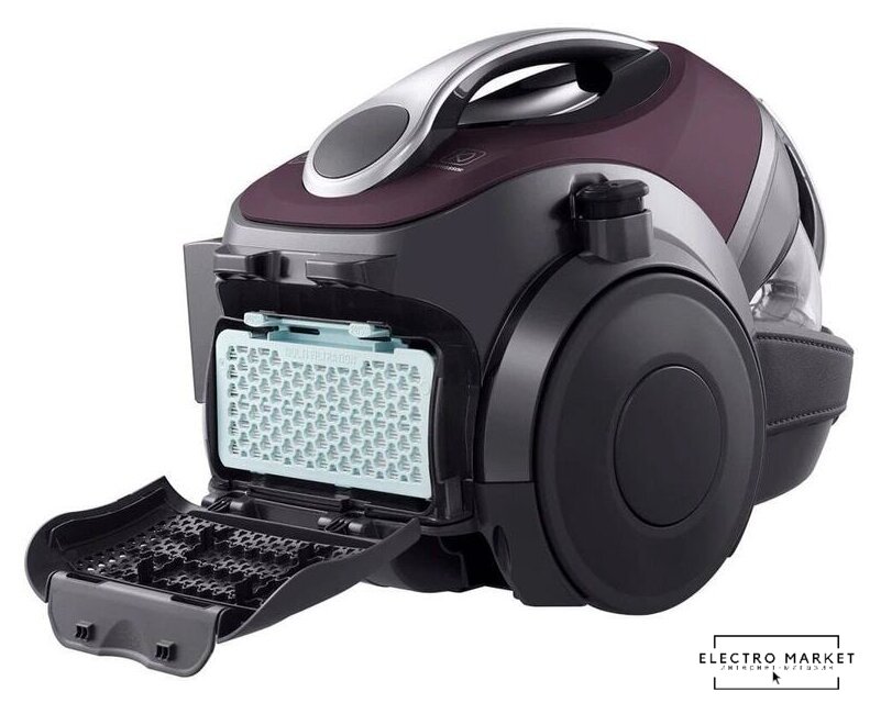 с контейнером, пылесборник: контейнер, мощность всасывания: 410 Вт, потребление: 1900 Вт, регулировка мощности на корпусе, шум 82 дБ, турбощетка